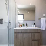 A fürdőszobai felszerelések bidét, walk-in zuhanykabint és külön WC-t is magukba foglalnak. Hajszárító és fürdőlepedők biztosított a további kényelem érdekében.